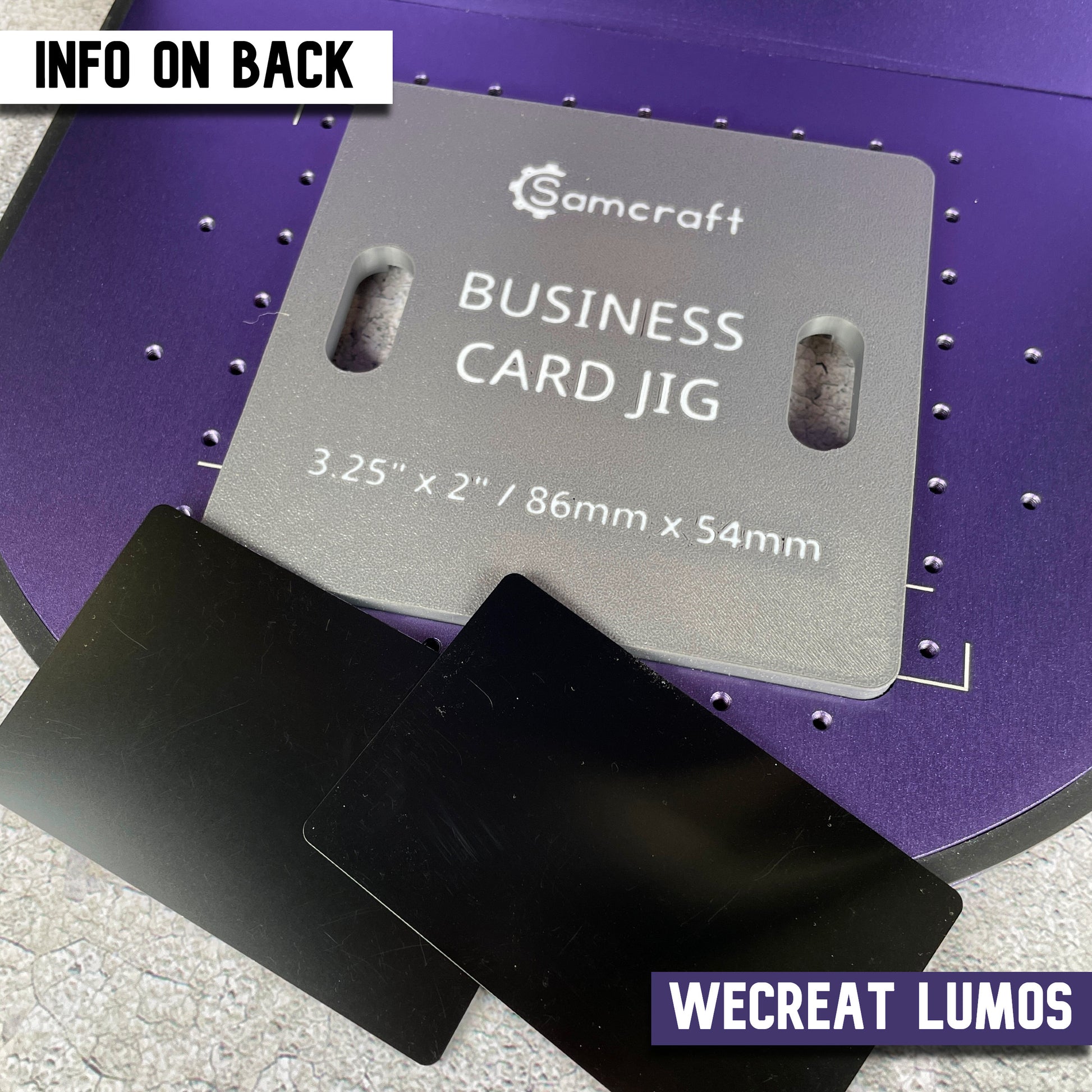 Eliminate the hassle of centering designs on Business Cards with my Dual Business Card Jig made for the WeCreat Lumos laser! This jig is specifically designed for metal Business Cards measuring 86mm x 54mm. This jig works in landscape and portrait orientation for maximum customization and ease of use.