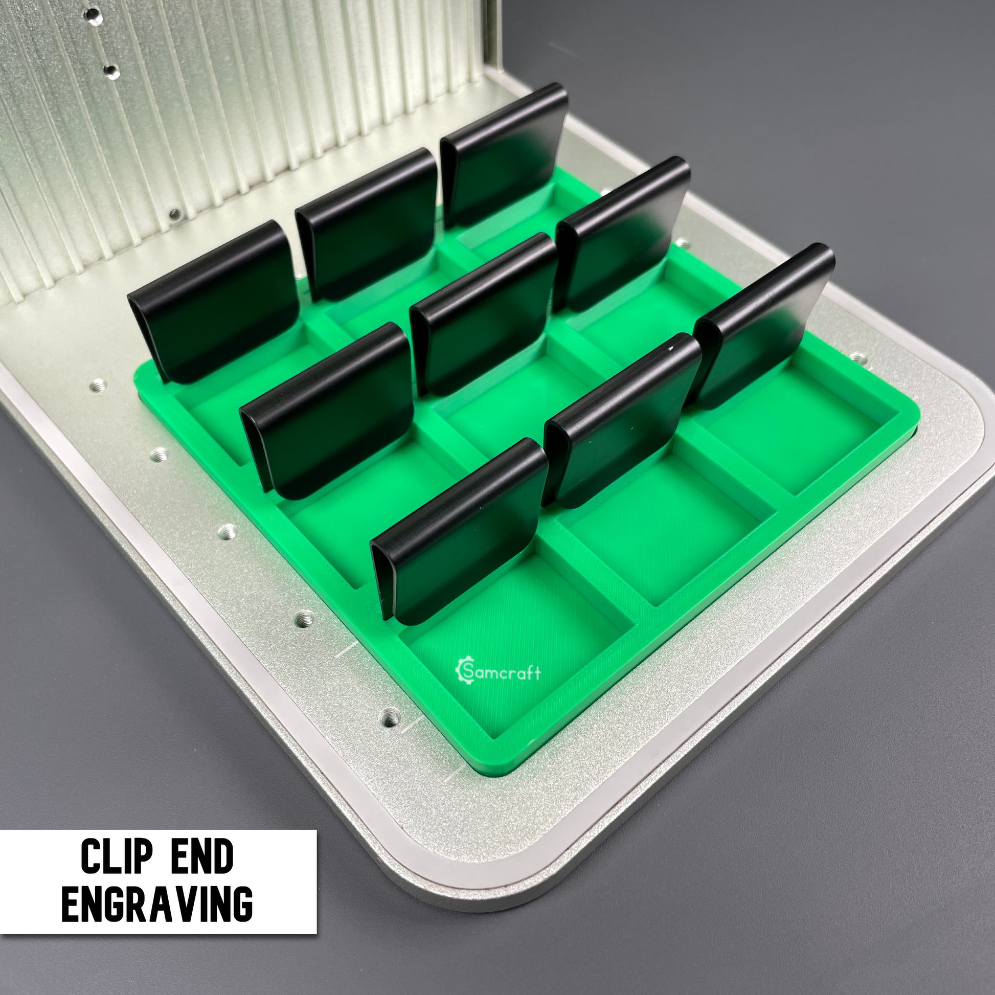 Hat brim clip engraving just got easier. This jig lets you process up to 9 custom engravings in a single batch, holding clips securely in any position—top, bottom, or ends. Perfect for makers scaling their custom clip production on the xTool F1 or xTool F2 laser.